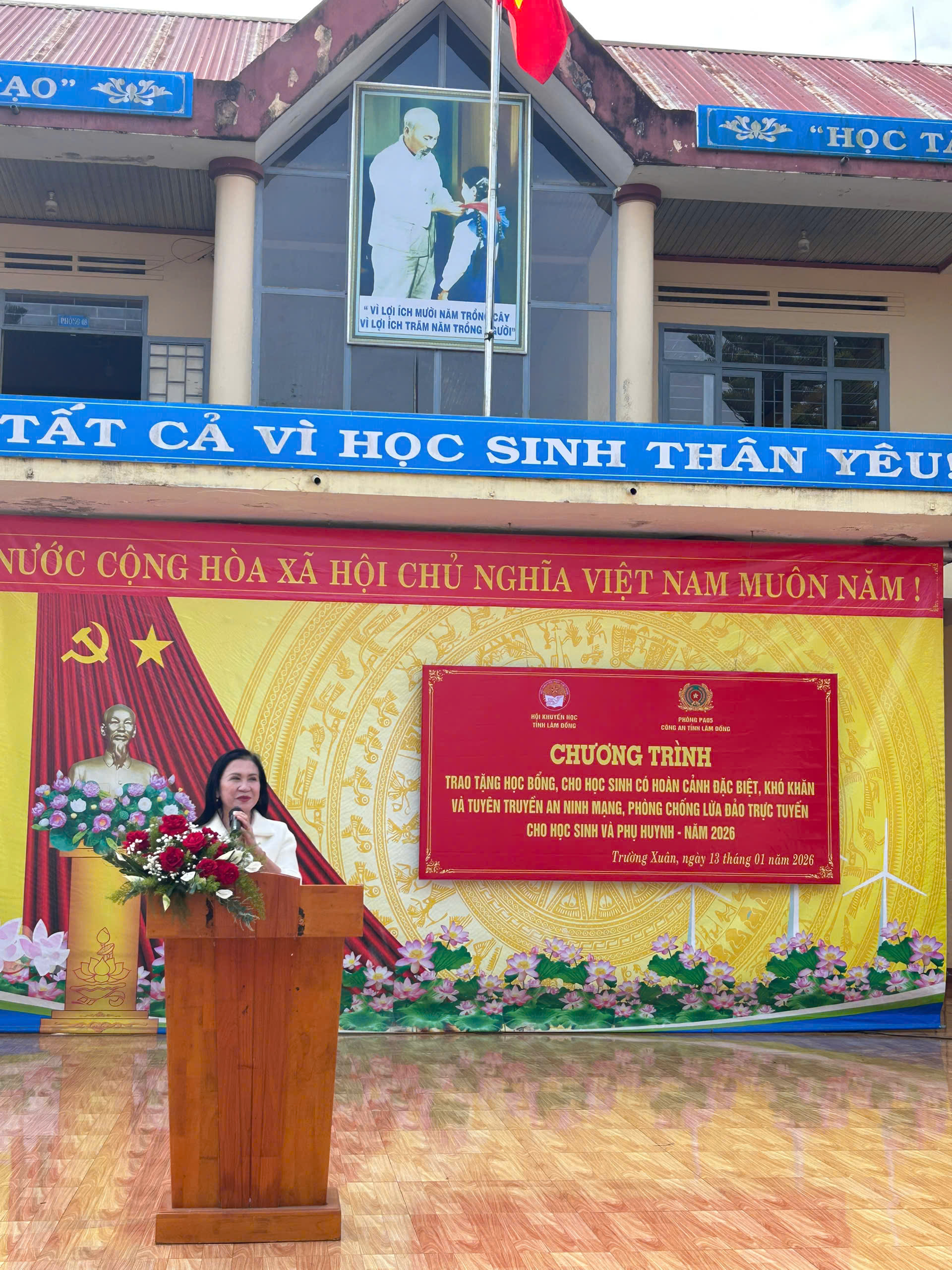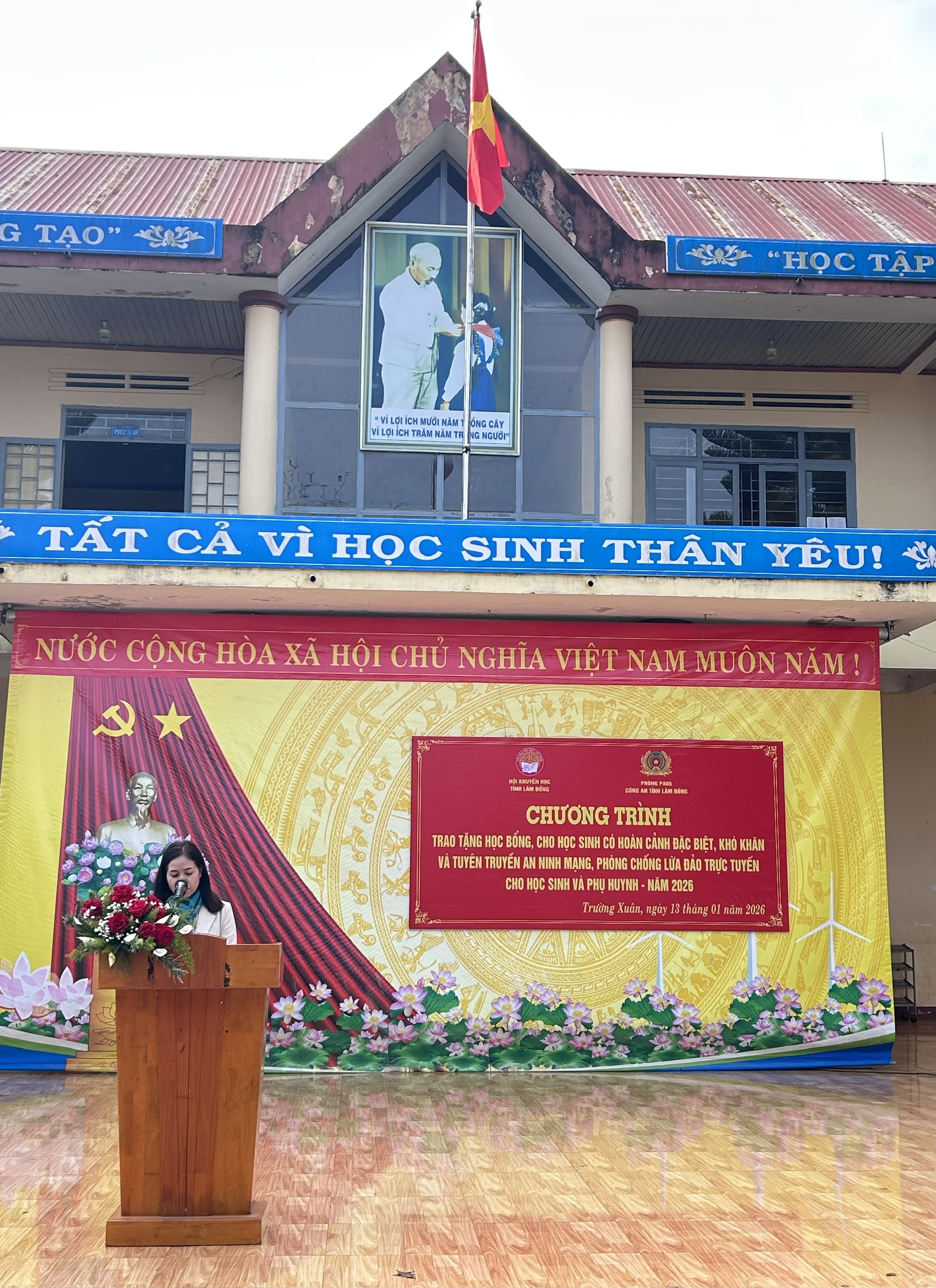 Sáng ngày 13/01/2026, tại Trường THCS Nguyễn Văn Trỗi (xã Trường Xuân), nhà trường phối hợp với Hội Khuyến học tỉnh Lâm Đồng trao tặng học bổng cho học sinh có hoàn cảnh đặc biệt khó khăn ở các xã Trường Xuân, Thuận Hạnh, Đức An và Đắk Song; đồng thời nhà trường cũng phối hợp với Phòng An ninh mạng và phòng chống tội phạm sử dụng công nghệ cao – Công an tỉnh Lâm Đồng tổ chức tuyên truyền an ninh mạng, phòng chống lừa đảo trực tuyến cho học sinh và phụ huynh.