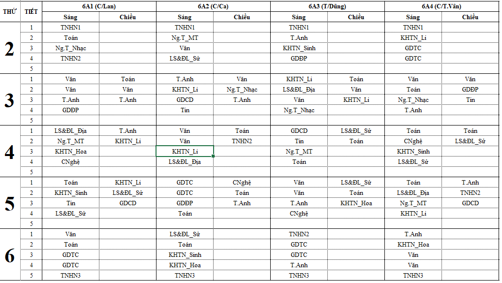 THỜI KHÓA BIỂU SỐ 02 – ÁP DỤNG TỪ NGÀY 10/11/2025