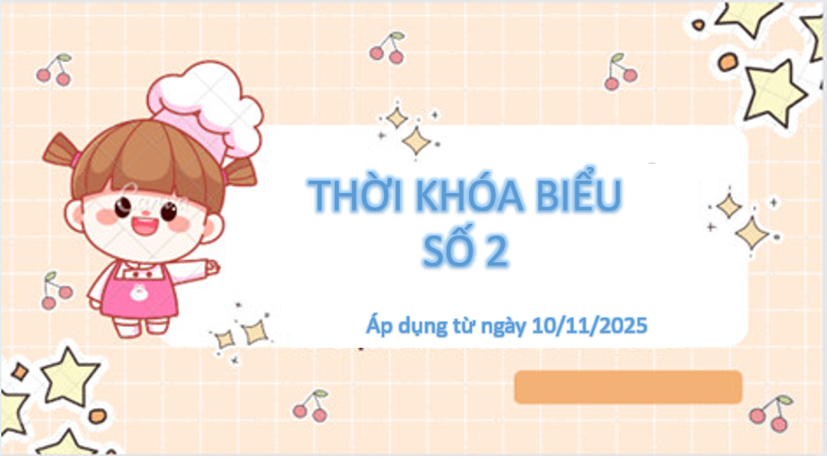 Nhà trường xin trân trọng thông báo: Thời khóa biểu số 02 sẽ chính thức áp dụng từ ngày 10/11/2025.